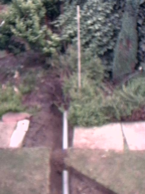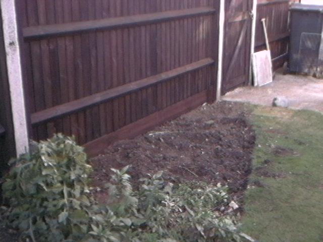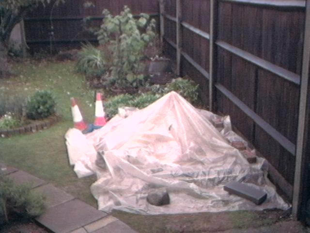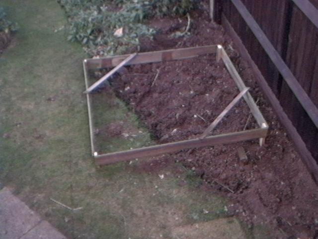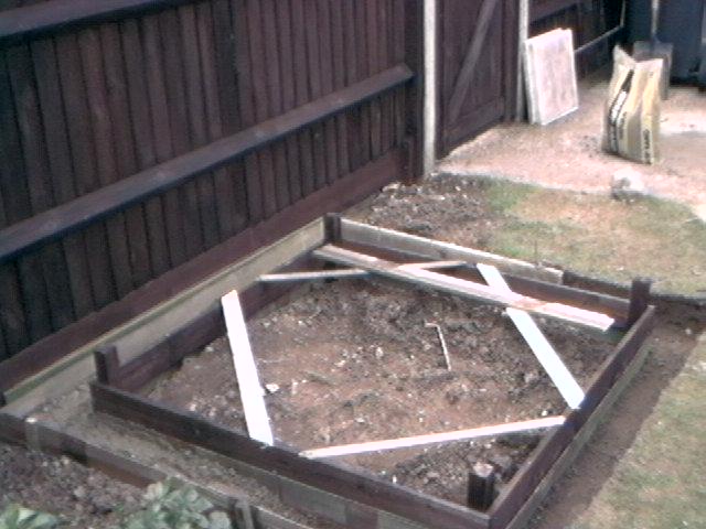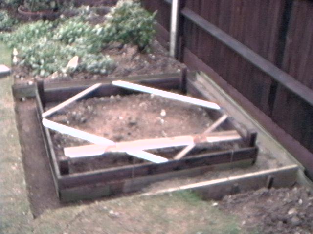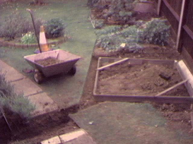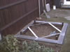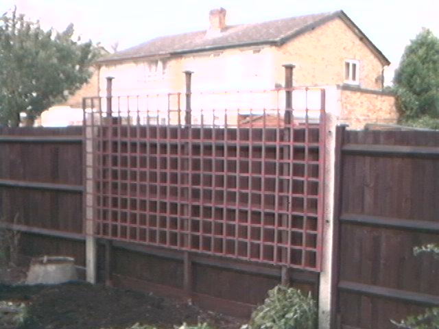A short diversion while the trellis is re-installed in its new position. It is now on three legs and higher. | |