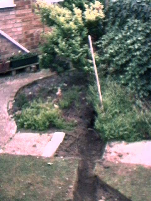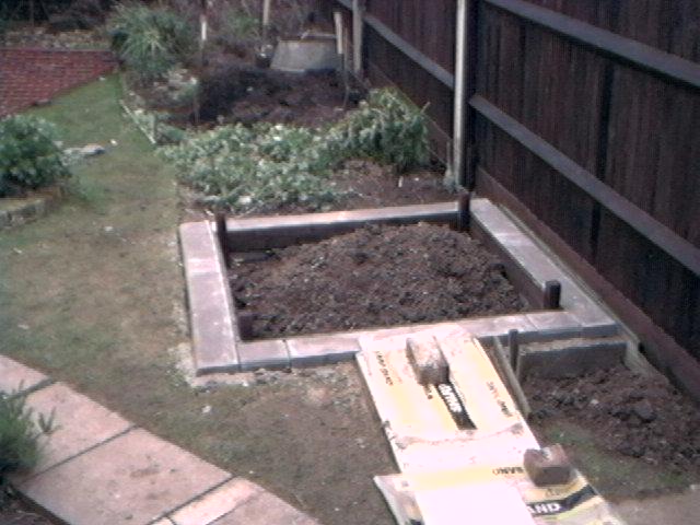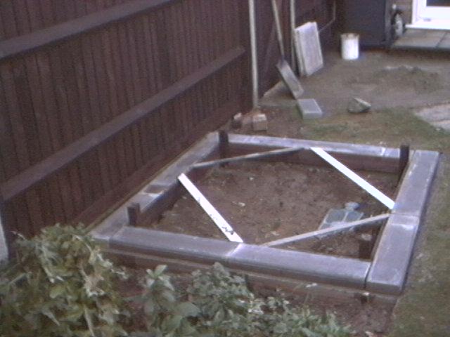 The foundation screed is laid and the paving slabs placed on top. These slabs are 914 x 150 x 50 edging slabs cut as necessary. | |
