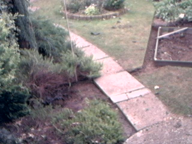 The internal bracing for the shutters has been removed and the path to the greenhouse entrance laid. | |