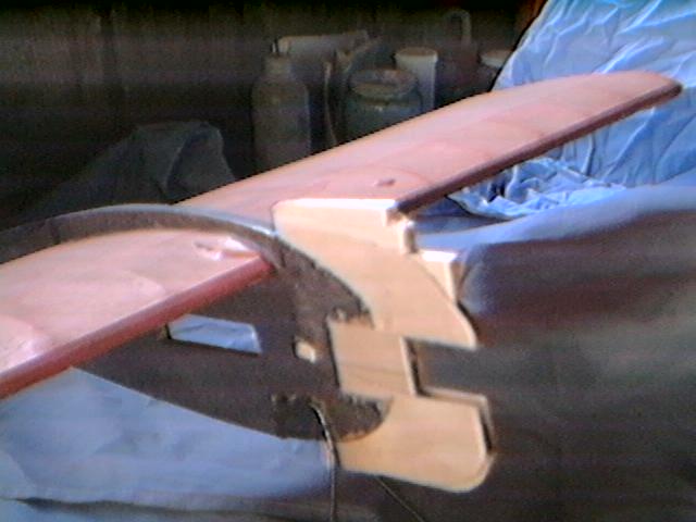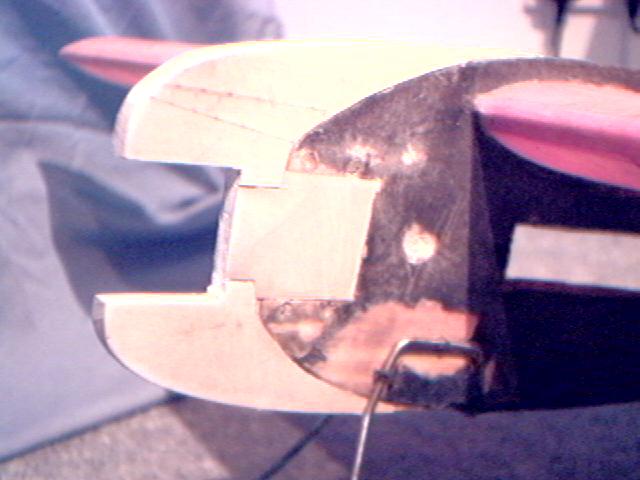This is a revised exit for the elevator control rod. Originally it was just pushed through the paper covering | |