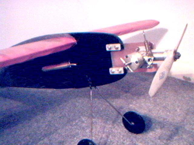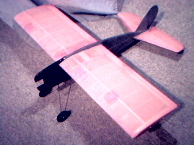 This particular aircraft was built around 1986. The plan used was published in April 1976 Aeromodeller (repeated in March 1985). It appears that this plan differs from Peter Cock’s original, particularly with respect to the fuselage construction. Click here to go to the plans page.