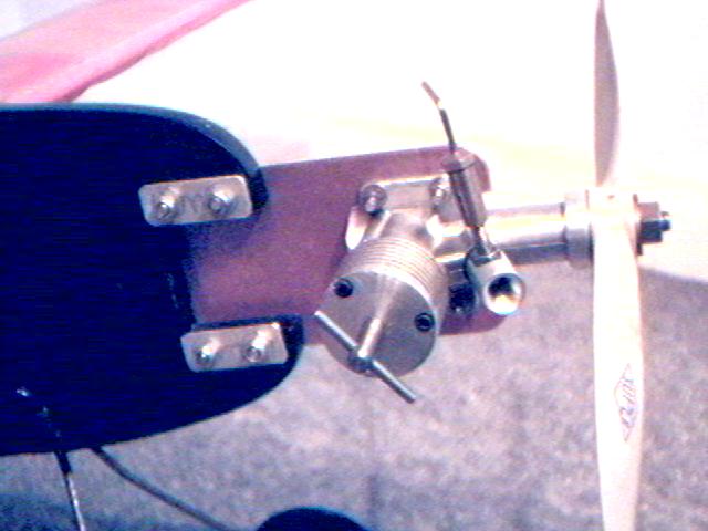 The extended engine mounting for the PAW 1.49. The four "inboard" mounting holes fit the ED Comp Special so this engine can still be used for display flying but, due to its age, will not perform stunts.